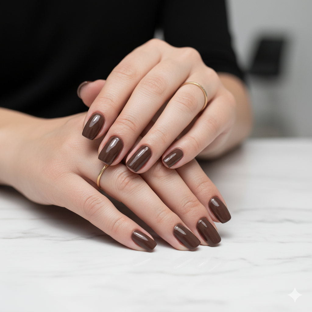 Eine Pause von langen Nägeln! Kurze Nagel-Modelle vereinen 2025 Eleganz und Praktikabilität. Dunkle Farben wie Mocha (Kaffee), Bordeaux, Marineblau und Khaki wirken in Kombination mit kurzen Nägeln souverän und stark. Dieser Trend ermöglicht es Ihnen, auch im Berufsleben anspruchsvoll zu sein, ohne auf Stil verzichten zu müssen.