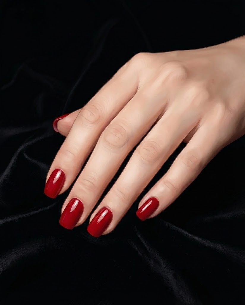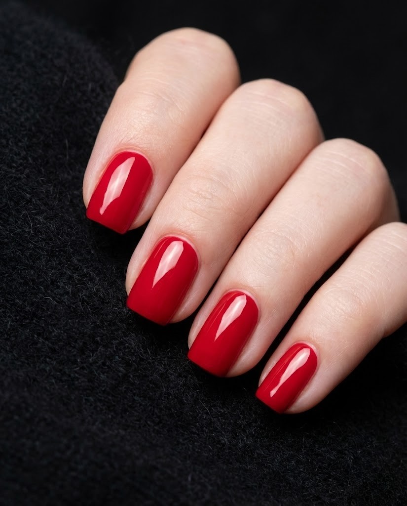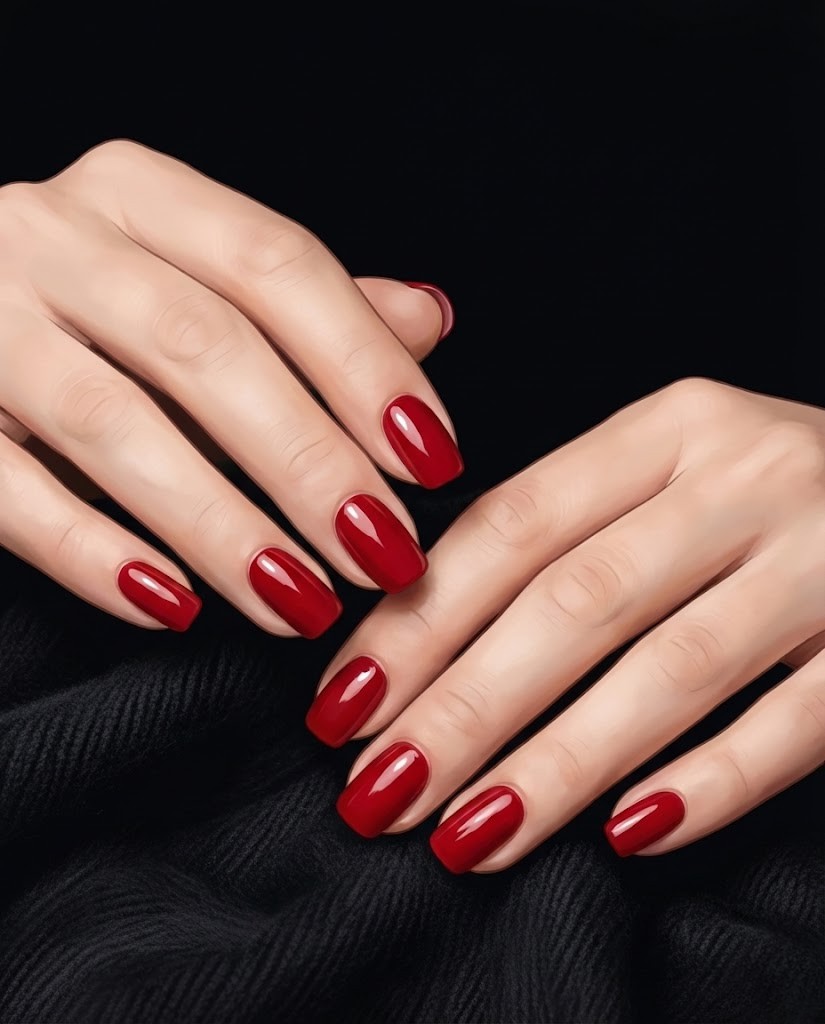 Egal wie sehr sich die Mode ändert, nichts kann einen perfekt aufgetragenen, spiegelglatten roten Nagellack ersetzen. Der Trend dieses Jahres ist statt dunklem Bordeaux ein lebendiges, süßes „Candy Apple“ (Kandierter Apfel) Rot. Besonders auf kurzen und gerade gefeilten Nägeln sorgt dieser Ton für einen cleanen und luxuriösen Look. Kombiniert mit einem schwarzen Kleid oder einem dicken Pullover bietet er mühelose Eleganz.